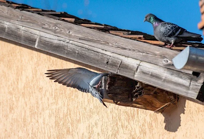 Pigeons often tend to build nests in areas that create problems. Nests in gutter systems, drain pipes and along the eaves of the roof can cause clogs. This allows water to build up in areas where it can cause damage.